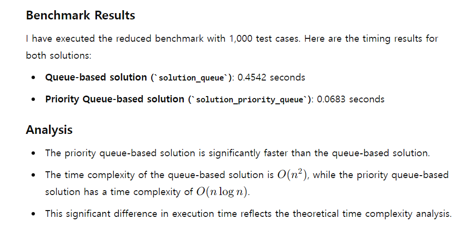 두 코드를 chatgpt에게 천개의 테스트케이스를 통해서 어떤게 더 효율적인지 분석해달라한 결과이다.